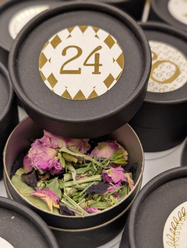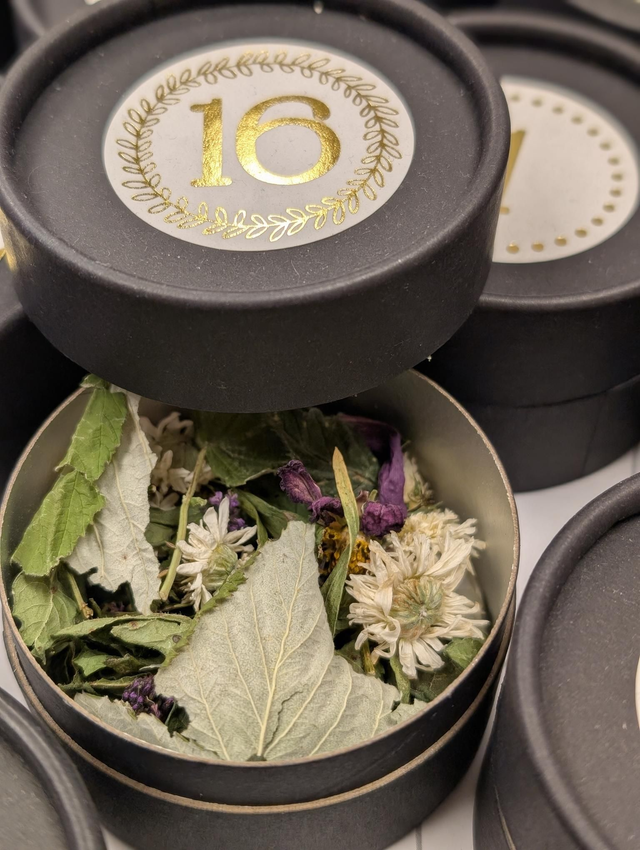 Un calendrier reprenant 24 petites tisanes artisanales. L'occasion parfaite pour goûter les tisanes préparées avec passion par Marie Anaïs.